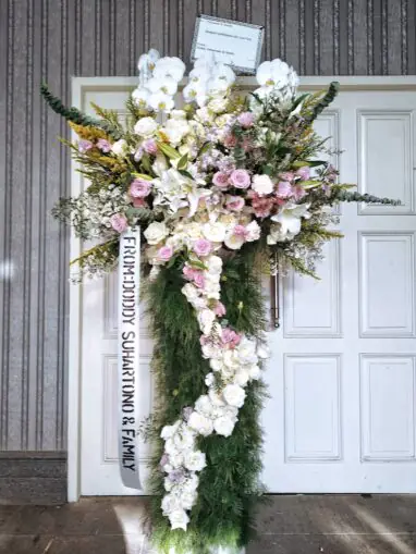 Ekspresikan empati dan penghormatan tulus dengan rangkaian bunga standing duka cita yang elegan. Kami biasanya menggunakan bunga lily putih, anggrek, dan krisan yang melambangkan kedamaian dan simpati mendalam.4. Standing Flower Apresiasi atau Terima Kasih