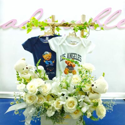 Sambut kelahiran buah hati dengan penuh cinta melalui Baby 10 salah satu unggulan rangkaian Bunga & Jumpsuit dari Adorable Florist Jakarta. Rangkaian bunga disertai dengan baby jumpsuit dan ucapan selamat yang bisa dicustom sesuai dengan keinginan Anda. Memadukan bunga segar pilihan dengan jumpsuit bayi yang lucu, menciptakan hadiah yang manis dan bermakna untuk momen spesial ini.Hadiah Sempurna Untuk Yang Tersayang