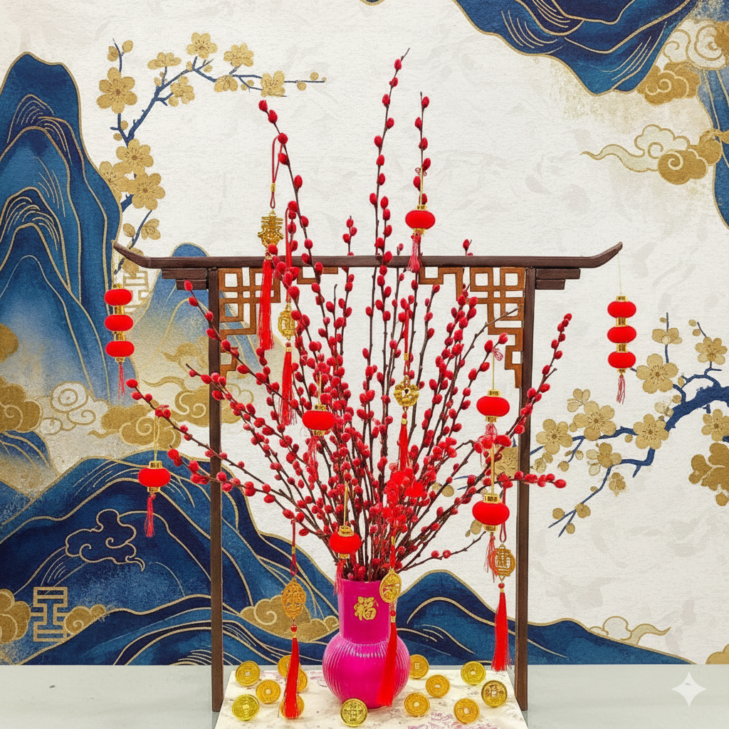 As the red blossoms bloom, may fortune arrive, happiness stay, and every new day be filled with warmth, abundance, and good health. Welcoming luck, one branch at a time.