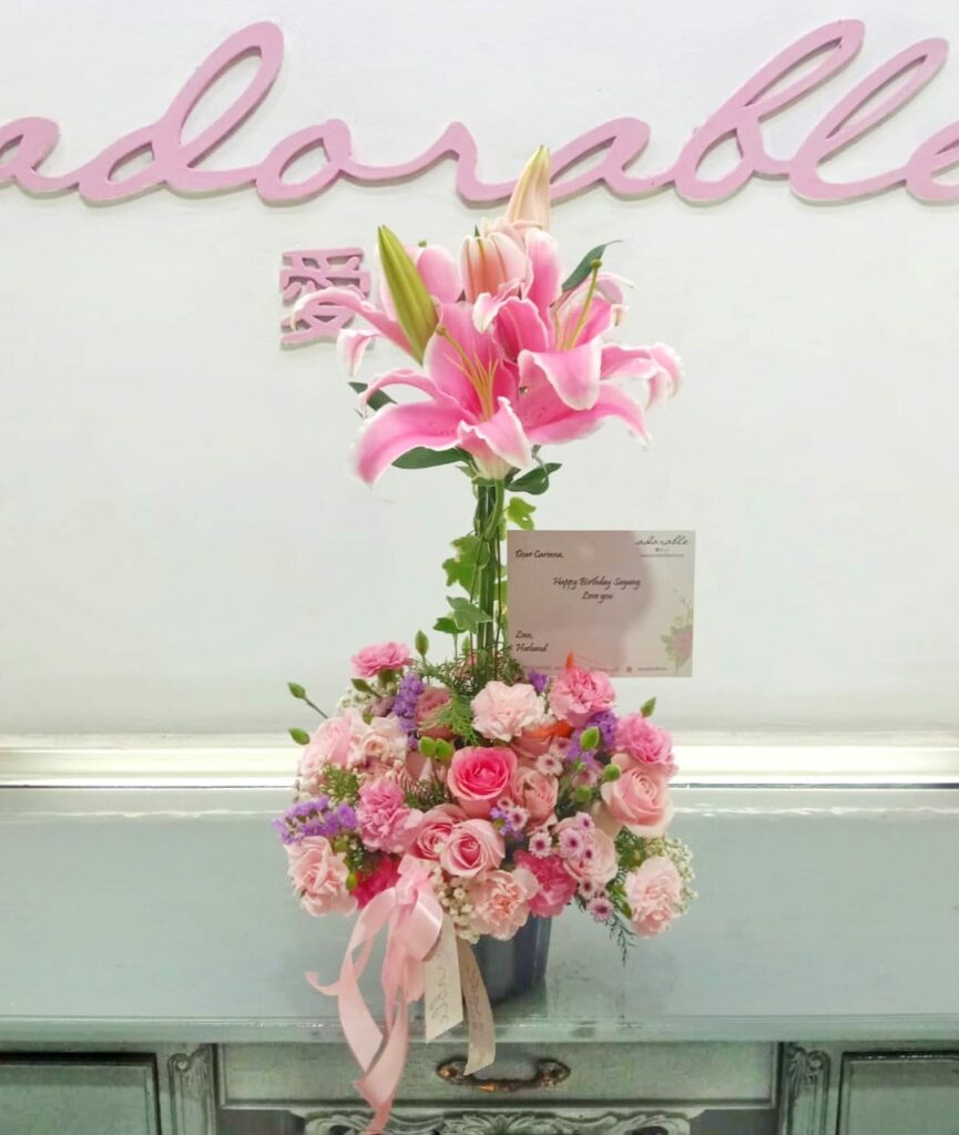 I.E : vase, soft toy, basket etc. If so required, we will substitute the material to equal or greater value, and we will ensure that the ‘design and quality’ of the arrangement will be maintained.