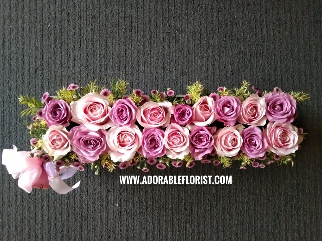 – 2 row of roses total 20 roses and in season filler flower , with various theme colour / 2 baris bunga rose dan bunga filler dengan berbagai tema warna